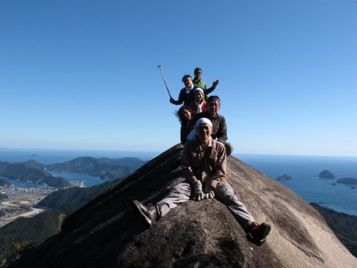 一人ずつ石の先端までゆき写真を撮影するが、みんな少し足がすくんでいるようである。象の背の横の岩の上で尾鷲の街と熊野灘を見下ろしながらランチタイムとした。