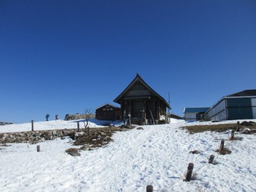 冬季の直登ルートは使えず、夏ルートを九十九折りに登っていくのだが、ほとんど休憩なしで一気に登り詰め3時間ほどで山頂に到着した。