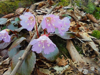 下りはじめてすぐ、またまたイワウチワがたくさん咲いていました。そのあと、ブナ平で休憩しました。いろんな種類の小鳥があちこちでさえずっててとても気持ちの良いところでした。