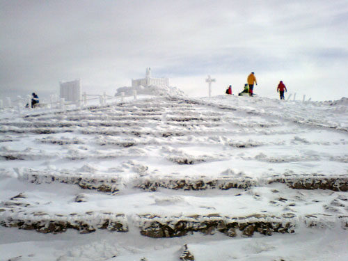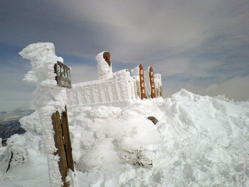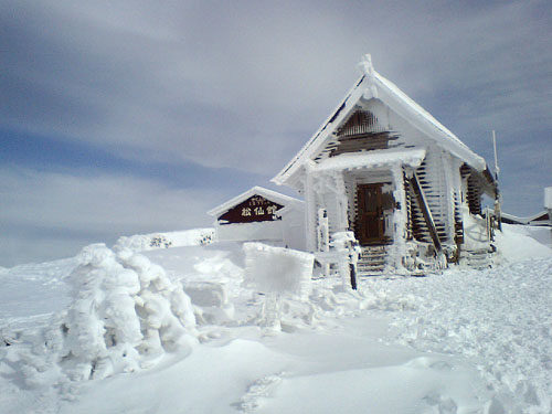 頂上は多少雲が有りましたが天候もまずまずで風もないのでベンチに座りゆっくりと昼食を取ることができました。下山は夏道から樹氷の林の中を下り、民間の駐車場でお茶とぜんざいをいただきました。