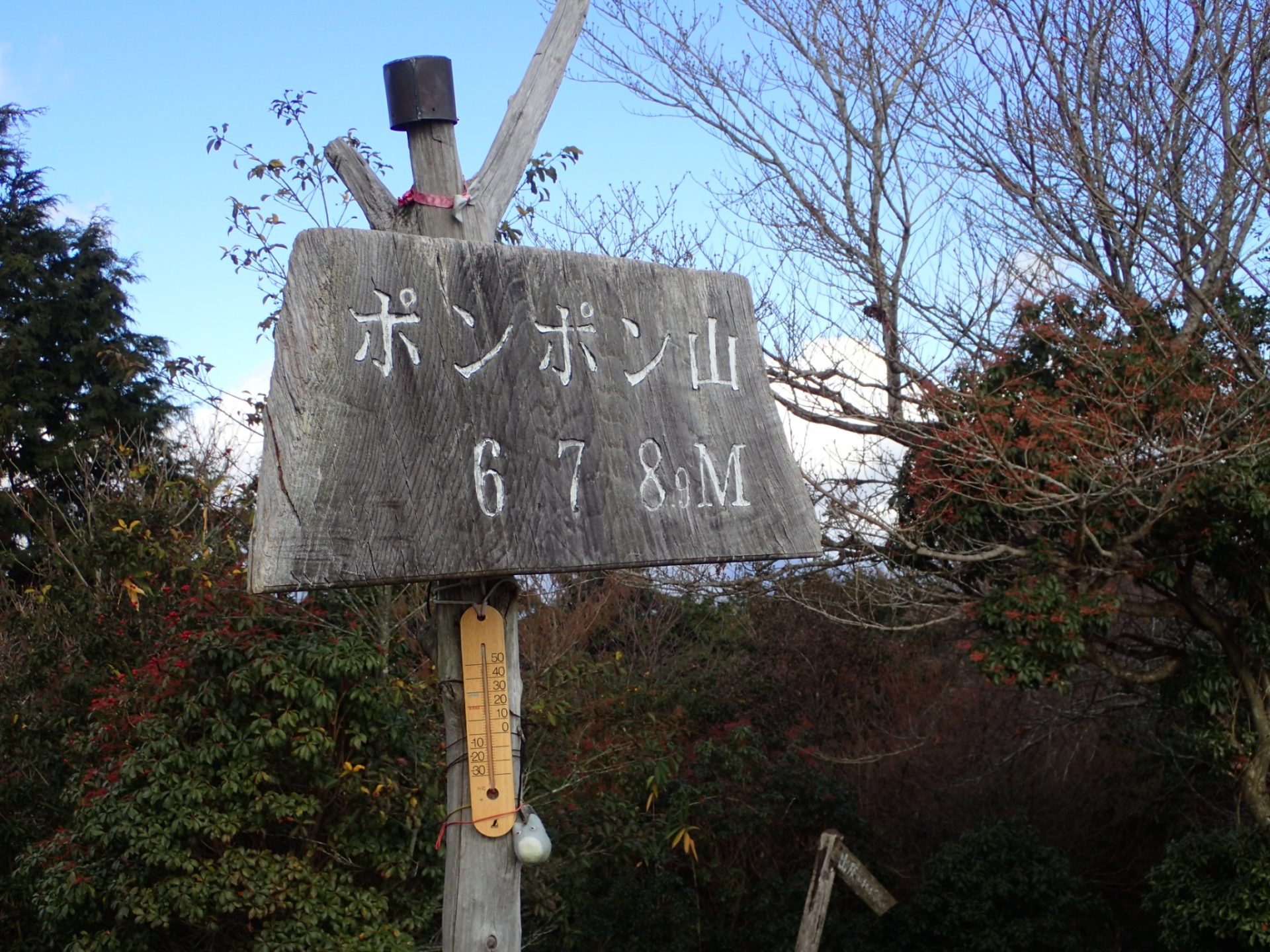 その後、送電線の鉄塔を過ぎ、杉谷との分岐やパノラマコースとの分岐等を通過し、ポンポン山に到着。
