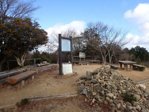 山頂は3等三角点とテーブルが設けられているが、周囲は樹林のため、展望はよくなく、あいにく陽が当たらなかったため、10分程度の休憩で体は冷え込み、出発した。