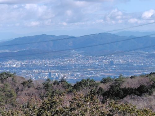 山頂は平日のためか、登頂者は数名の男女だけであったが、青空が広がり、北山、東山の山並、京都市内、高槻市内が一望出来、期待通りの展望を十分楽しむことが出来た。