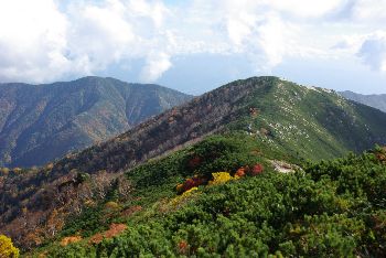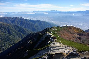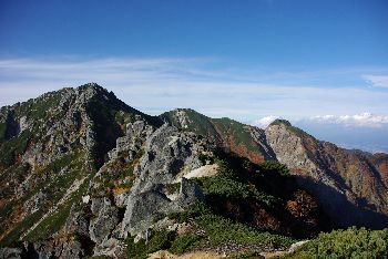 翌日は、薄暗いうちに民宿をたち、南木曽登山口へ、思っていた以上に険しい山で山頂付近からは、中央アルプスの連嶺が巨大なうねりとなって見通すことができ、昨日その稜線にいたことが遥か昔のようにも思われた。南木曽岳の赤く色づいたナナカマドに忍び寄る山の秋を感じた。