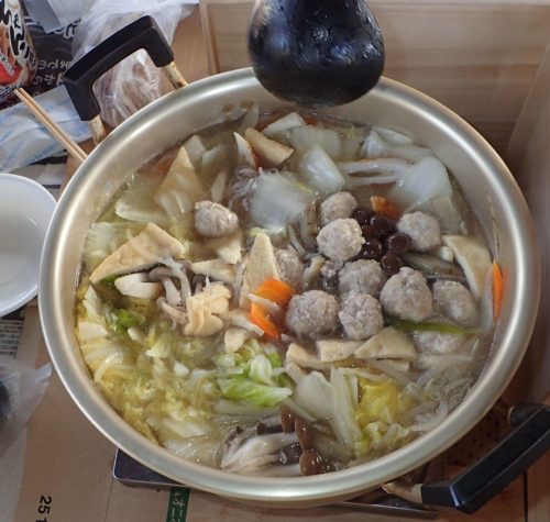 その後本日のメインともなる山飯メニューは「ちゃんこ鍋」