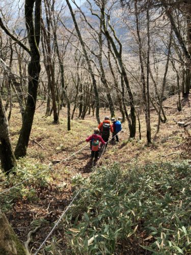 体験の方2名を受け入れたことで、改めて山岳会の山行とは? を真面目に考える機会になりました。リーダーが入念に計画し、役 割を分けて一端をメンバーに担ってもらう。行き当たりばったりバ ラバラに動くのではなく、チームで動く。一人ひとりが自立した登 山者を目指す過程で学びながら、経験値を上げて安全登山が身につくのだと思いました。
