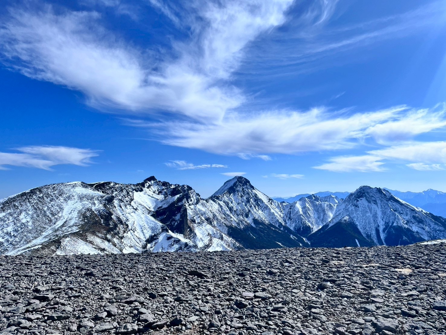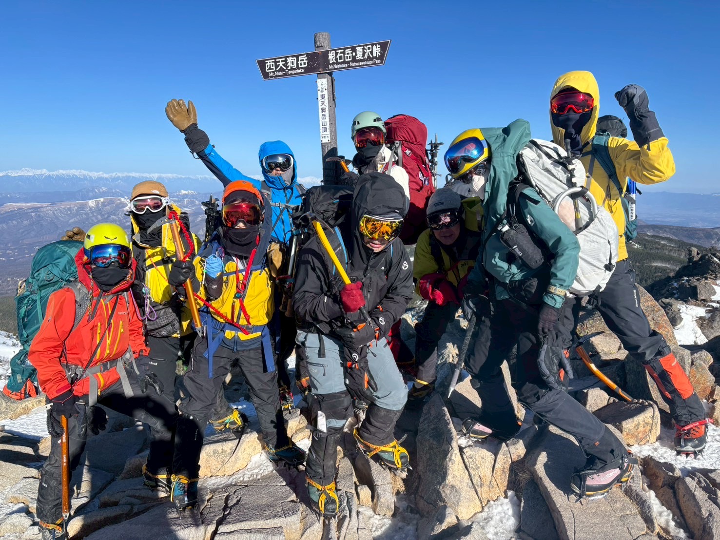 硫黄岳、箕冠山、根石岳、東天狗岳、西天狗岳、中山、茶臼山、縞枯山、北横岳とピークをつなぐことができ充実感でいっぱいです。メンバーそれぞれの思いがあり、初めての雪山装備の不安、重たい荷物を持ってロングを歩けるだろうか、体調面の心配などを克服して心に残る縦走になっていればうれしく思います。